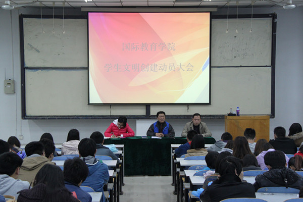 大会首先由陈忠宝老师对我院学生文明创建工作进行统一的安排。随后,张屹书记对我院整体的学生文明创建工作提出要求,他强调了学生文明创建工作的重要性和必要性,要求广大学生不断提高自我约束、自我管理、自我生活的能力,不断提高大学生基本文明素养,不断提高并充分展示大学生时代风采。