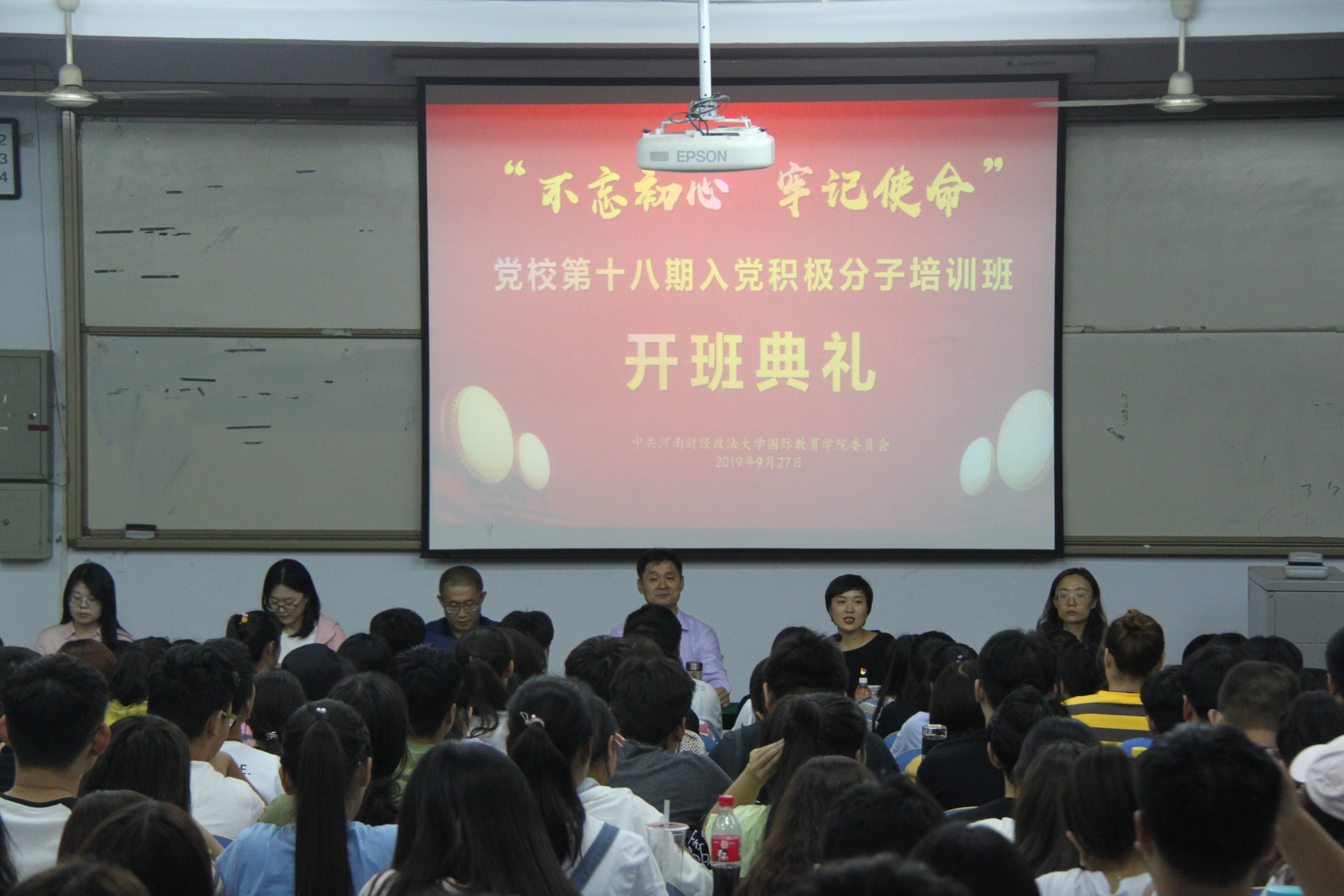 2019年9月27日晚18:30,WilliamHill在文北校区二东一教室举行党校第十八期入党积极分子培训班开班典礼。WilliamHill党委副书记姜保忠、熊辉,学生党支部书记、委员,第十八期入党积极分子培训班学员及大一新生代表出席了本次典礼。典礼由院团委书记、第一学生党支部书记张晓静主持。