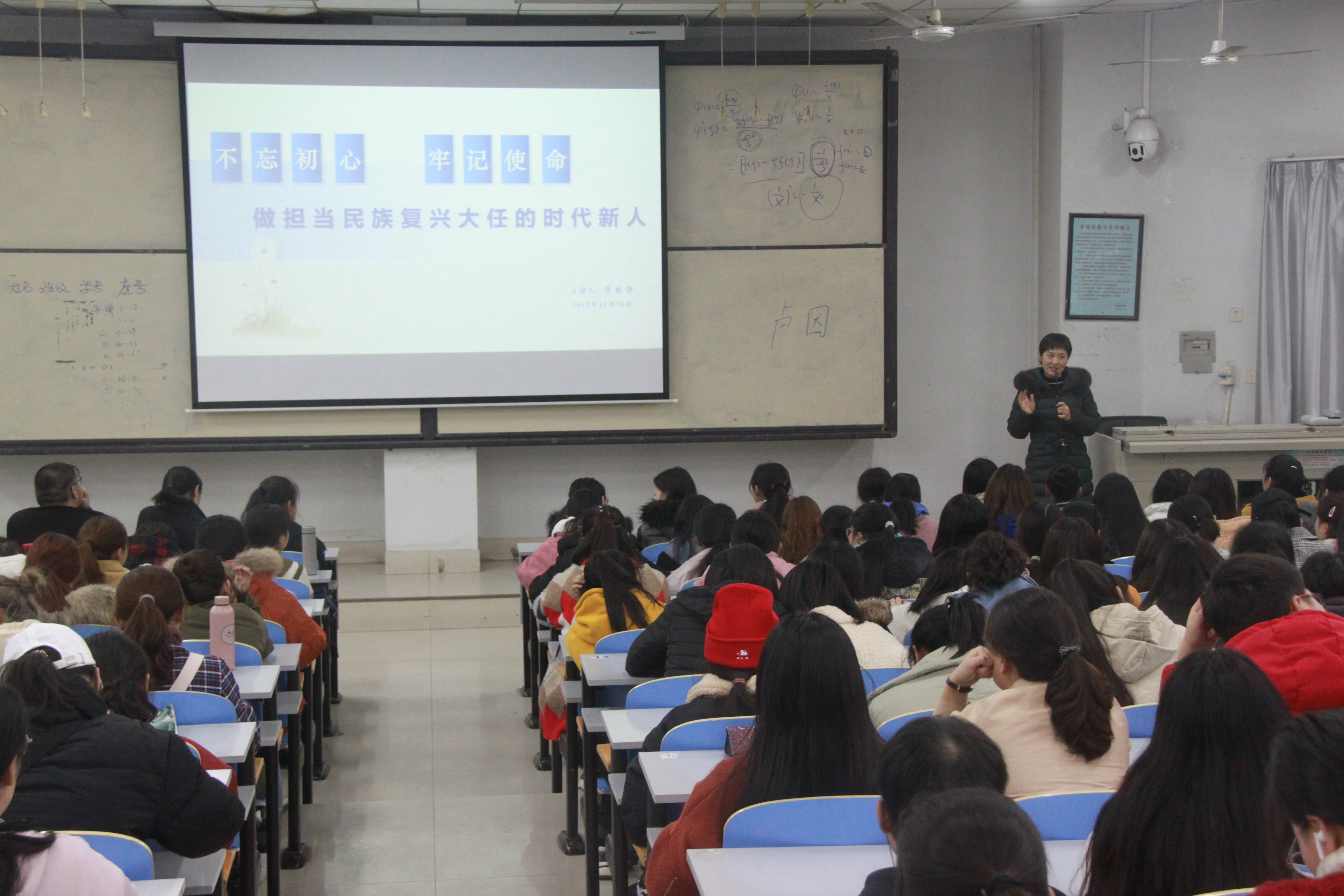 2019年11月26日晚,我院于十阶一教室举行“不忘初心、牢记使命”专题团课,院团委书记张晓静主讲,2019级全体共青团员400余人参加了本次团课。