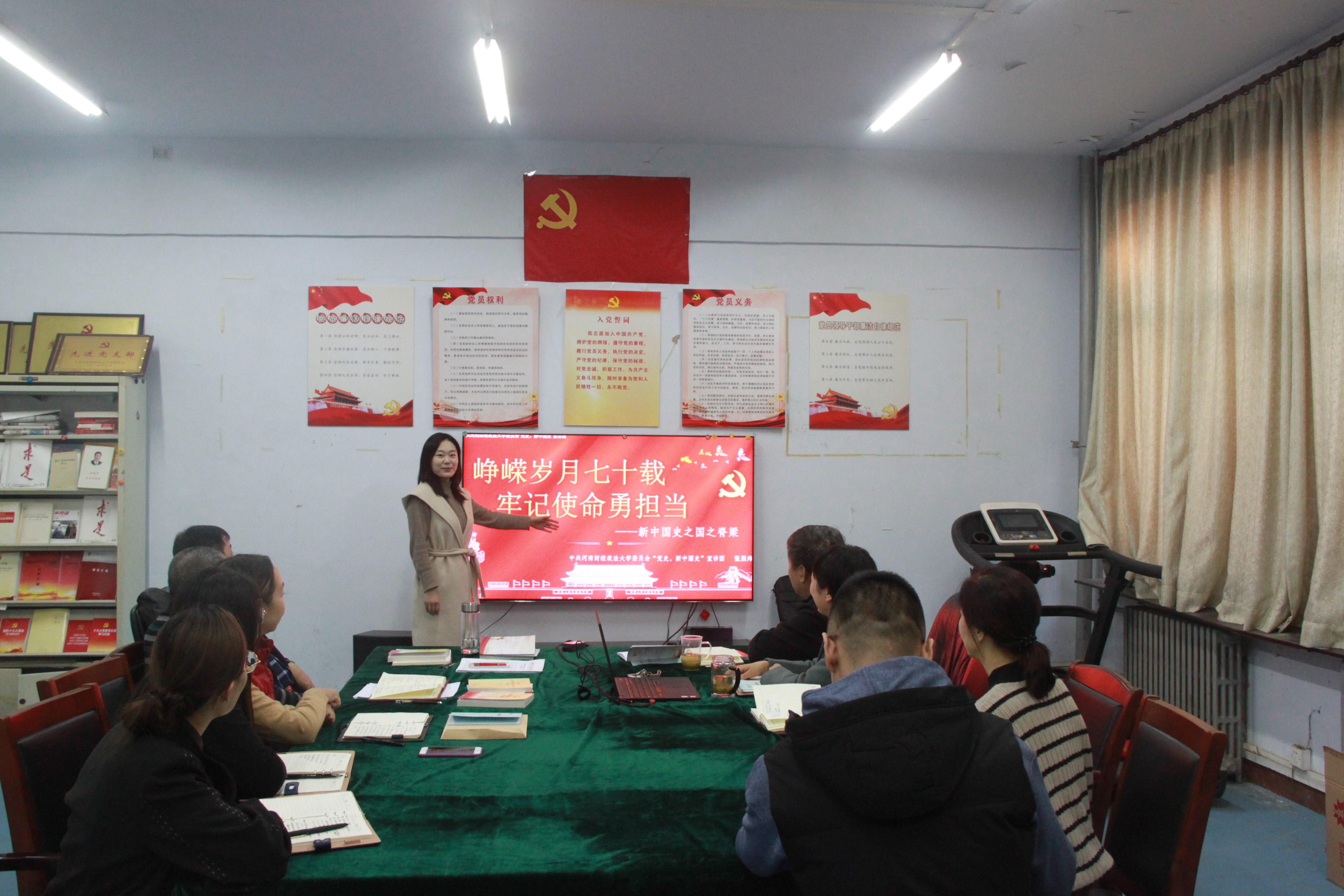 11月20 日下午三点,WilliamHill在文北校区二号楼106党员之家开展“新中国史”宣讲,学院全体教职工参加。作为williamhill中文“党史、新中国史”宣讲团的讲师,张晓静、张熙炜分别为学院教职工带来“砥砺奋进七十载,初心不改再出发”以及“峥嵘岁月七十载,牢记使命勇担当”的专题微型党课。