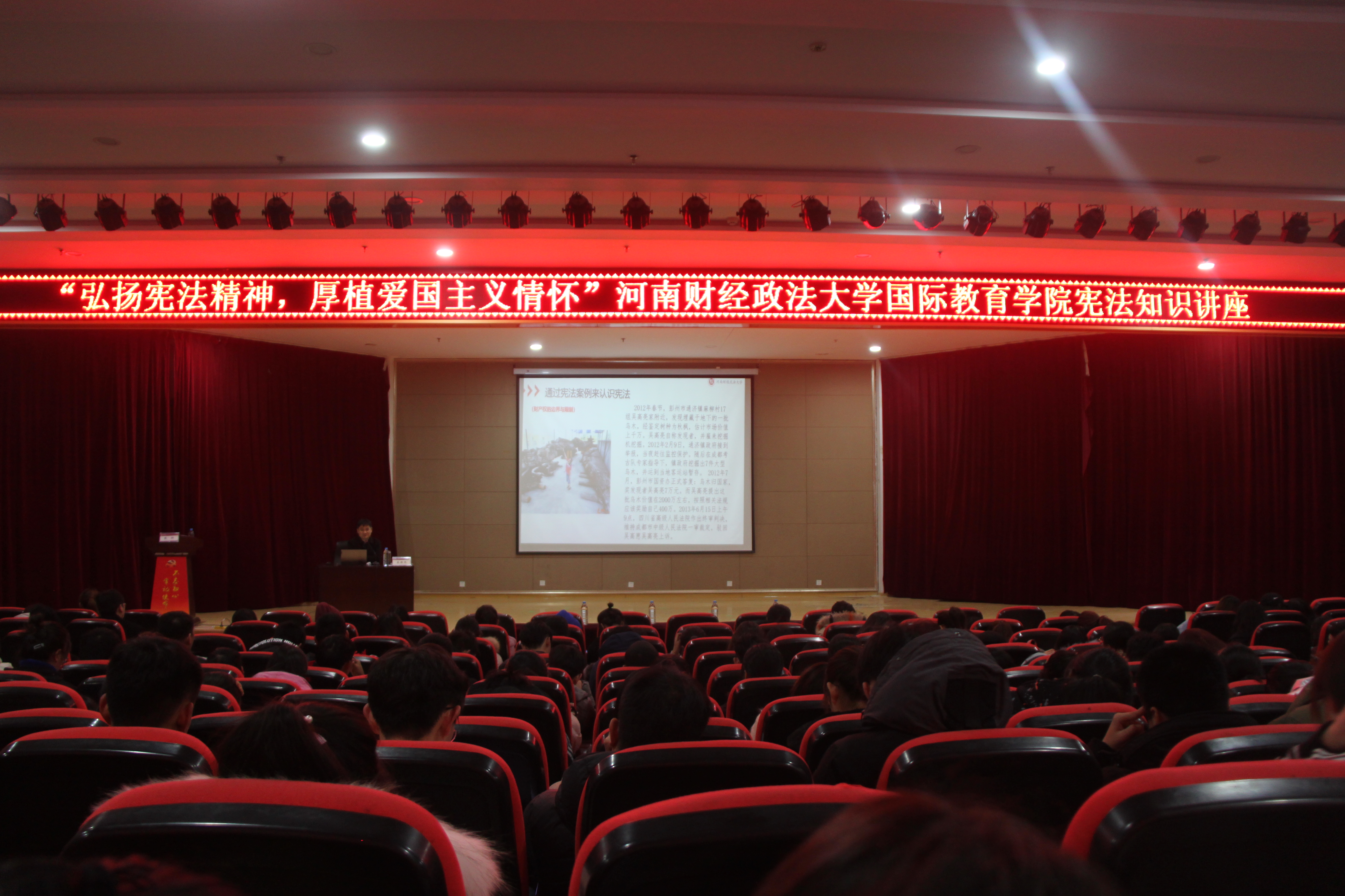 讲座期间,姜保忠首先以宪法和你的一生有什么关系为引子,结合自身工作经历和生活经验,运用真实的案例和生动的视频,阐释了宪法对每个公民日常生活的重要性,继而深入阐释了宪法的定义、宪法的发展、宪法的内容。