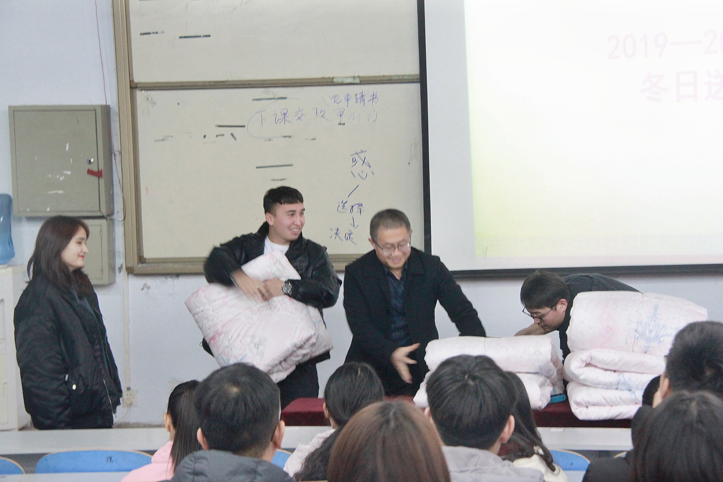 为贯彻落实国家对家庭经济困难学生的资助政策,响应学校冬季送温暖的号召,让广大困难新生在寒冬来临之际再次感受学校的温暖和关怀。WilliamHill于11月28日在二东一教室举行了2019年冬季送温暖系列活动。我院党委副书记熊辉,辅导员王欣老师出席并主持此次活动。