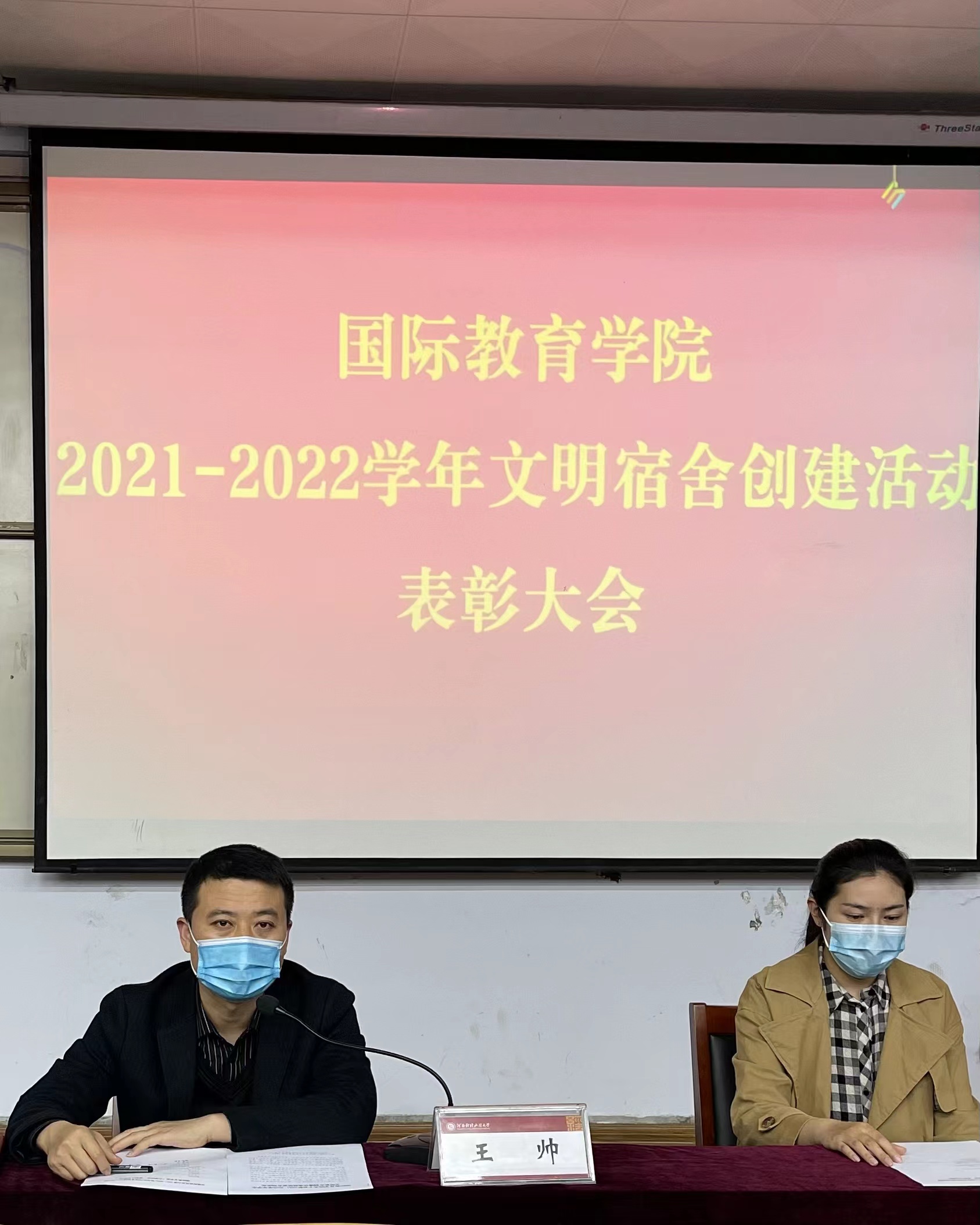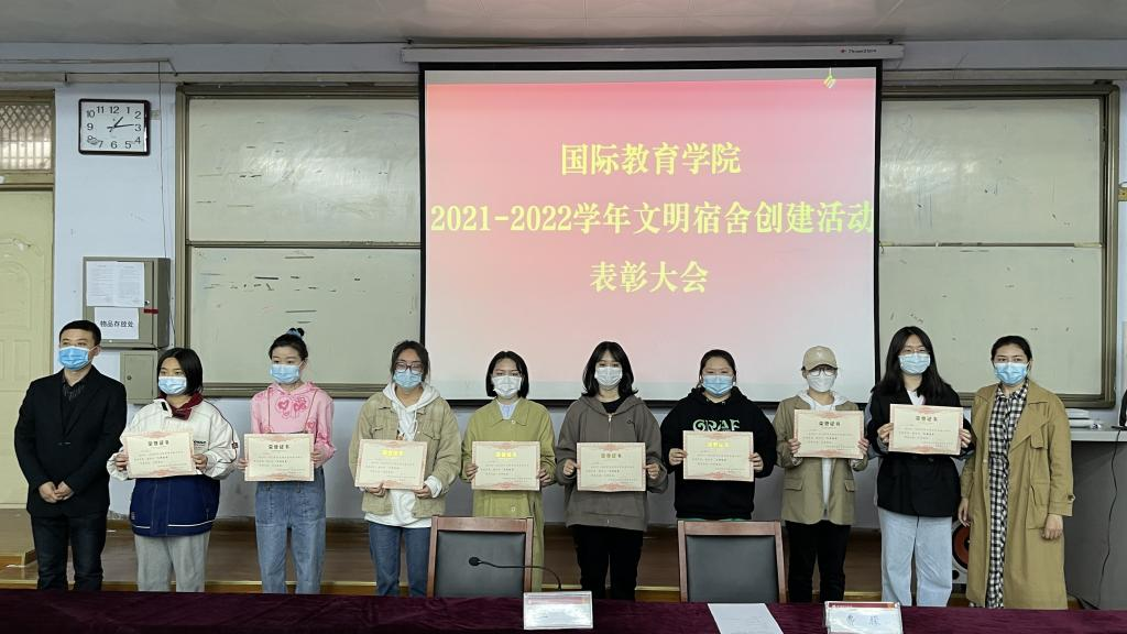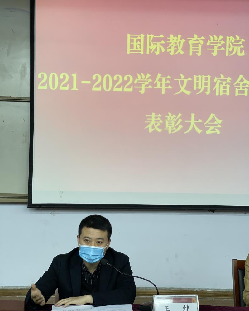 2021-2022 学年文明宿舍创建活动以社会主义核心价值观为引领,以“六个结合”为重点,聚焦立德树人。此次大会为获奖宿舍颁发荣誉证书和流动红旗,在大会最后,王帅对活动作总结发言,他强调,文明宿舍创建活动要创新风,建新貌,教育引导学生以宿舍为家,舍友为亲。“创新风”,一是创“舍风”,宿舍既是大学生思想文化交流的主要阵地,也是矛盾容易产生的场所,舍风的好坏直接影响大学生的日常生活;二是创“学风”,宿舍除了是大学生休息场所,也具备学习场所的功能,“学霸宿舍”正是在舍友的互相追赶和良性竞争中形成的;三是创”社交之风”,在与来自五湖四海的舍友的交往中提升沟通交流能力。“建新貌”,一是建宿舍新貌,营造整洁、健康、温馨、和谐的宿舍环境;二是建制度新貌,制定宿舍文明卫生公约,建立文明宿舍长效管理机制,以文明宿舍创建推动学生精神文明创建。