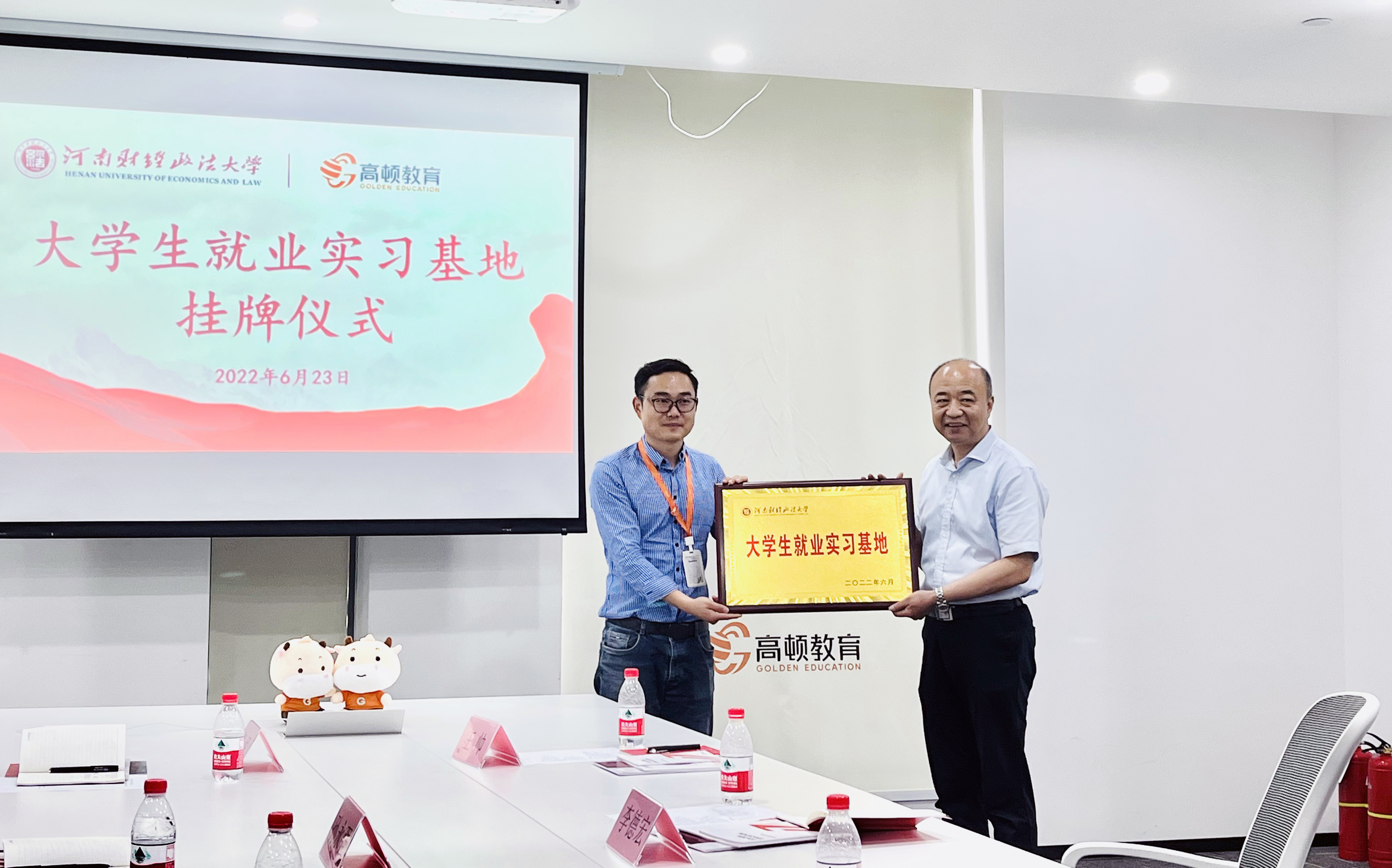 座谈会后,王锋代表学校向高顿教育集团颁授“大学生就业实习基地”匾牌。此次访企拓岗活动,是校企双方建立合作的良好开端,将有助于深化校企合作,推动双方加强供需对接,为校地校企合作打下了坚实基础,共同促进我院毕业生更加充分更高质量就业。
