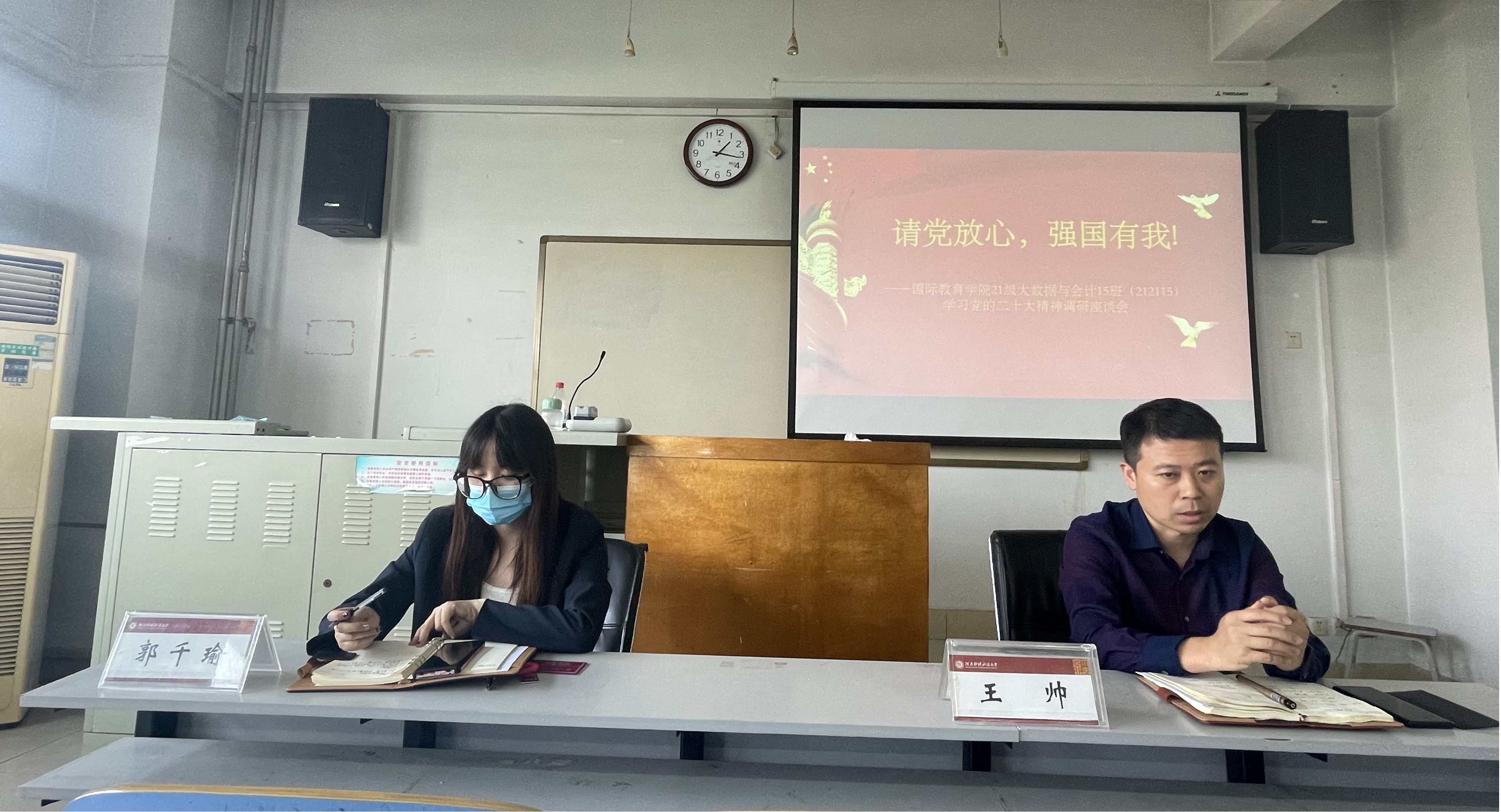2023年5月8日,WilliamHill党委副书记王帅参加212115团支部在文北校区10号楼408教室开展的“请党放心,强国有我!”主题团日活动,并就学习贯彻习近平新时代中国特色社会主义思想主题教育进行调研座谈,辅导员郭千瑜主持会议。