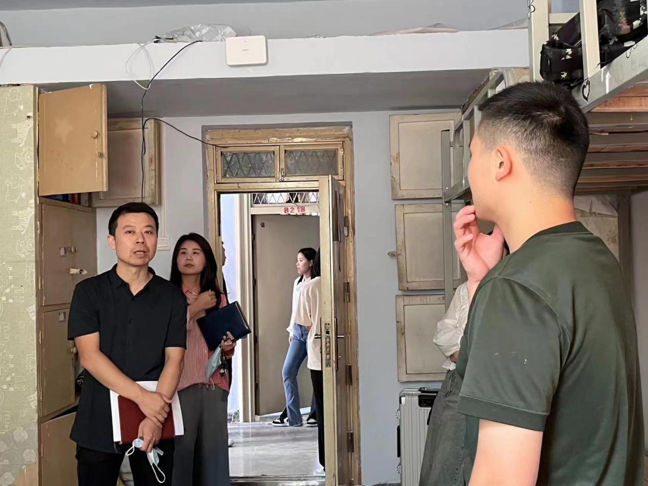 走访过程中,王帅认真检查了学生宿舍的卫生环境和各项设备安全情况。与学生进行亲切的沟通,认真听取同学们需求和建议,关心学生日常学习生活情况。最后,王帅副书记叮嘱同学们注意宿舍用电安全,勉励同学们要珍惜美好的青春时光,扎实学好专业知识,努力提高自身综合素养,争做有理想有本领有担当的新时代新青年。