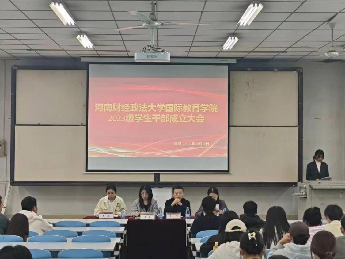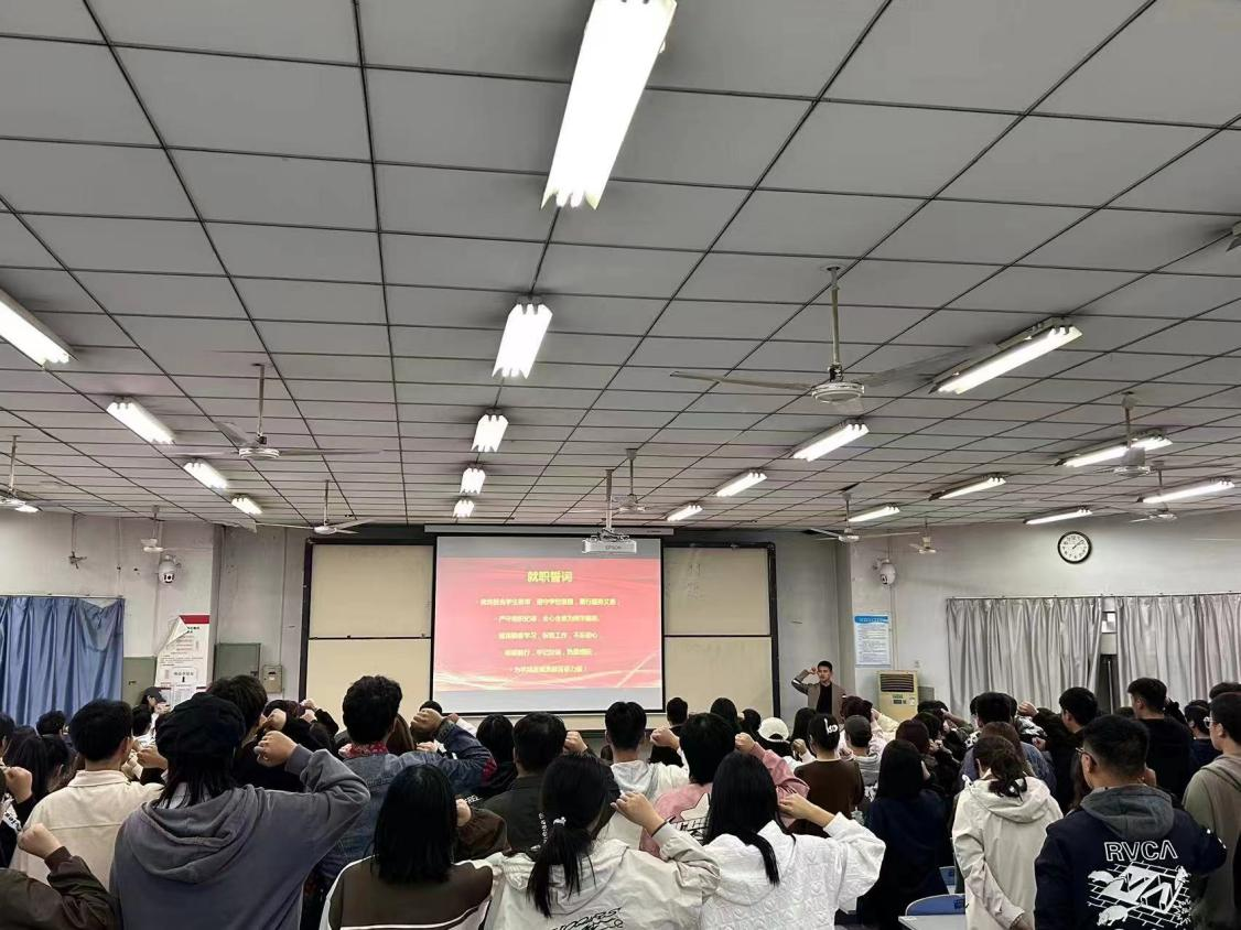 会议伊始,各部门负责老师宣读各部门学生干部换届名单。随后,2022级学生干部代表白轩旗,2023级何佳媛分别发言,分析工作经验。2023级学生干部代表刘庆晟带领全体学生会干部成员庄严宣誓就职誓词。