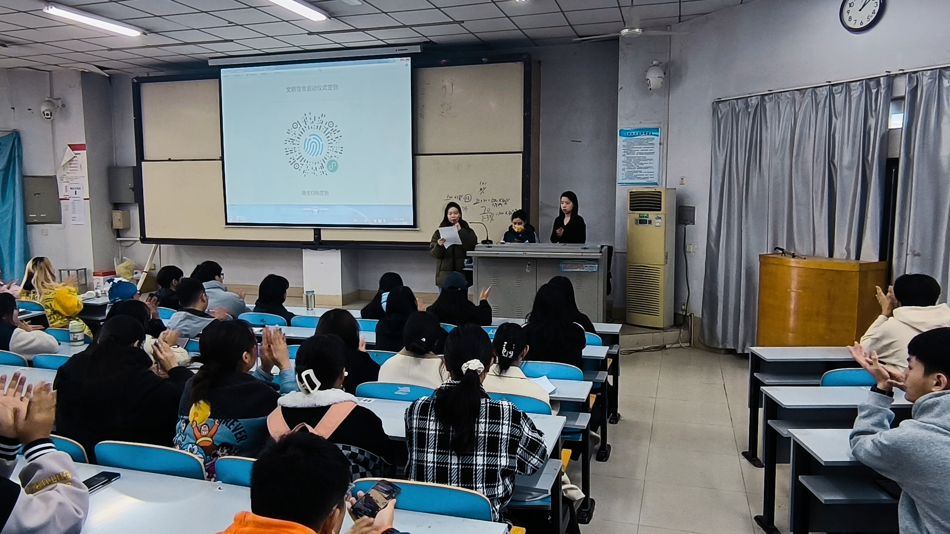 随后,邀请了往年文明宿舍代表钱皓月和赵焱宇分享自己在文明宿舍创建中的经验和体会。她们热情地分享了自己在宿舍生活中的点滴故事,讲述了如何在保持宿舍整洁的同时,与室友保持良好的关系。她们的经验和故事引起了在场同学的共鸣,鼓励大家积极参与到文明宿舍的创建中。