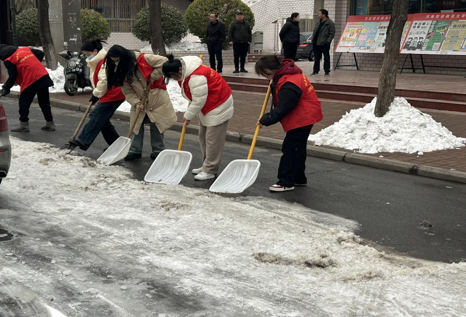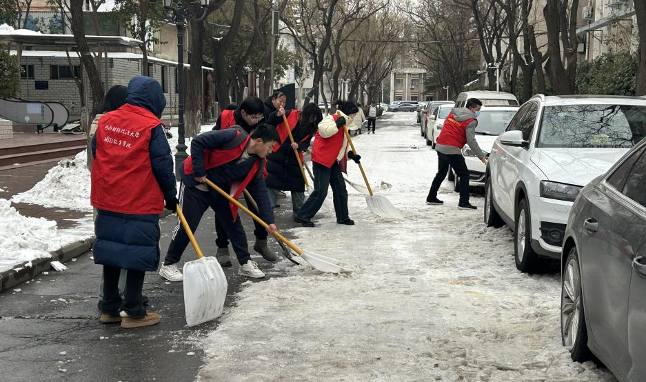 清雪除冰,迎风前行。此次清雪行动,我院师生党员凝心聚力,铲除坚冰积雪,起到了模范带头作用,为学生安全返校和人行道路畅通提供了保障。