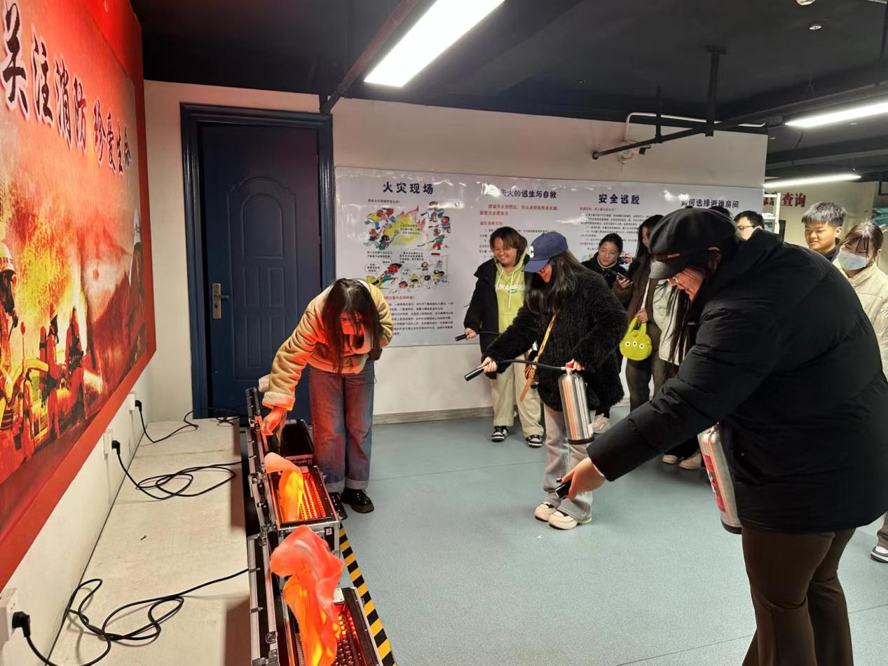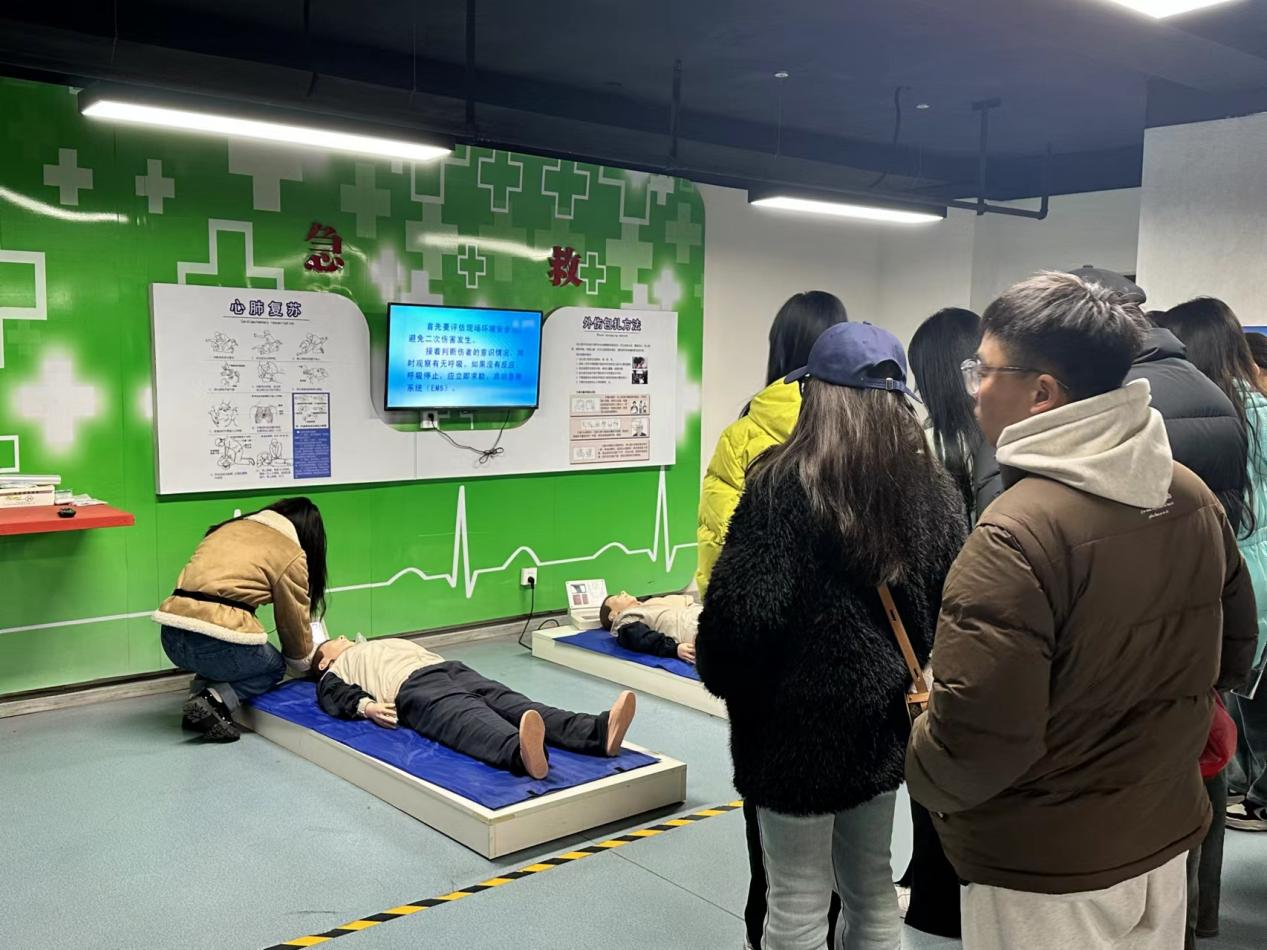 在讲解员的带领下,同学们通过体验拨打报警电话、心肺复苏方法、触电急救、宿舍火灾隐患排查、烟雾逃生等模拟操作项目,沉浸式地学习了安全知识,更加深入地了解了学习生活中常见安全隐患,提高了隐患风险排除和事故处理能力。