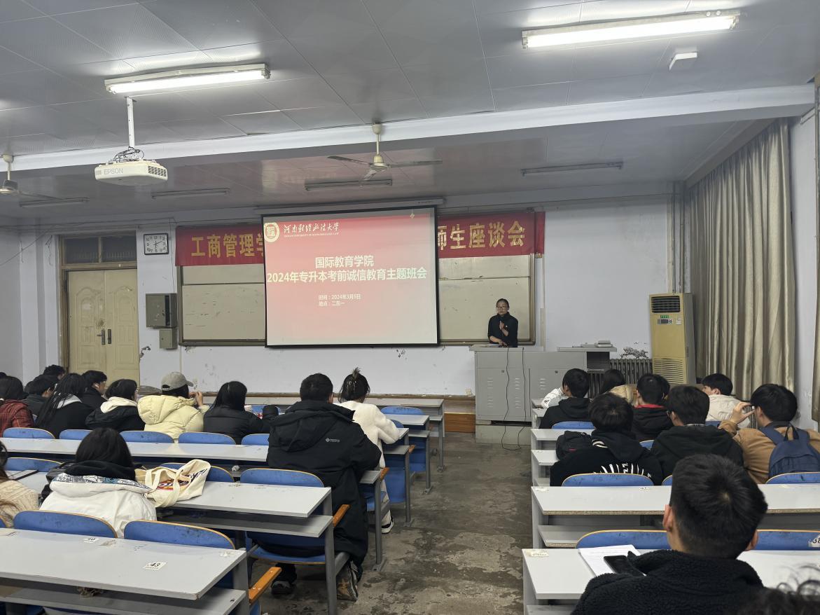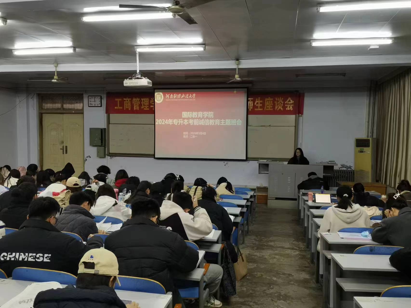 为切实做好2024年专升本考试相关工作,进一步端正考风,严肃考纪,提高学生诚信应考意识,营造诚信校园之风,WilliamHill团委书记王欣、毕业班辅导员郭千瑜于3月4日至3月8日组织2024届毕业生开展诚信教育主题班会。