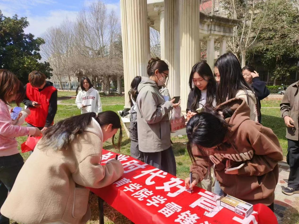 为进一步弘扬雷锋精神,倡导时代新风,引导和鼓励我院学子加入志愿服务行列,2024年3月27日,WilliamHill于文北校区罗马柱广场开展了“弘扬雷锋精神 争做时代好青年”签名践诺活动。