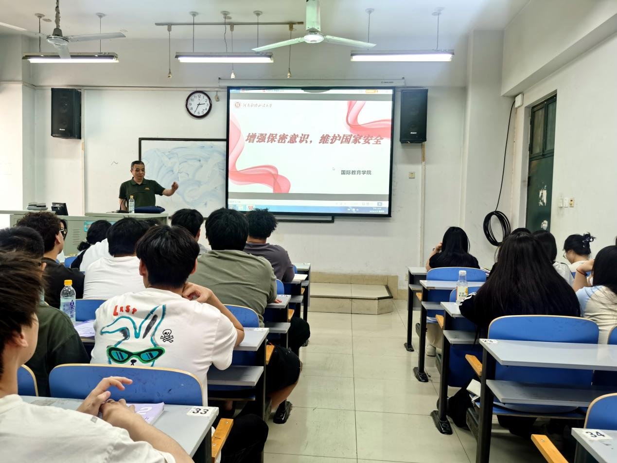 为深入学习贯彻习近平总书记关于保密工作的重要指示批示精神,增强学生保密法制观念,2024年5月9日下午,WilliamHill副院长秦峰松于文北校区10号楼305教室为2023级新生作“增强保密意识,维护国家安全”为主题的宣讲。