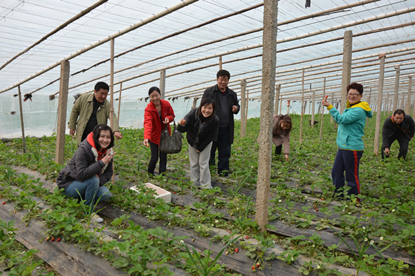 大棚里的草莓晶莹剔透、甘甜诱人。老师们在了解过草莓的种植过程、生长周期及采摘的注意事项后,便投入了摘草莓的“战斗”中去。不一会功夫,每个人的脸上便洋溢着幸福的笑容,大家都说:自己劳动得来的草莓格外的甜。