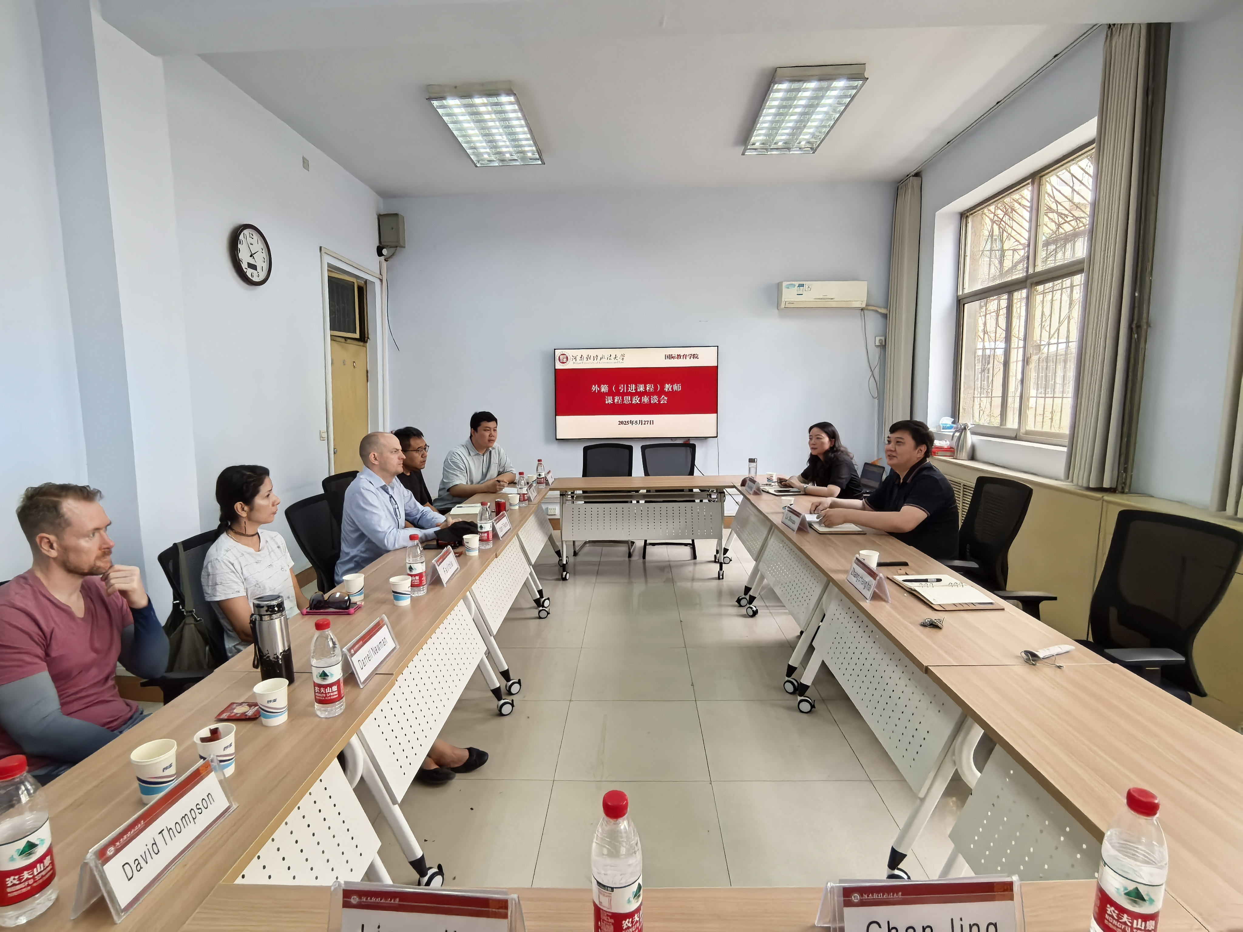 5月27日,我院引进课程教师座谈会在文北校区1号楼1114室举行。学院直属党支部书记鲁守璞、教学服务中心主任张乘海、部分外籍教师和双语课教师参加会议。座谈会由学院副院长朱爱清主持。 会上,鲁...